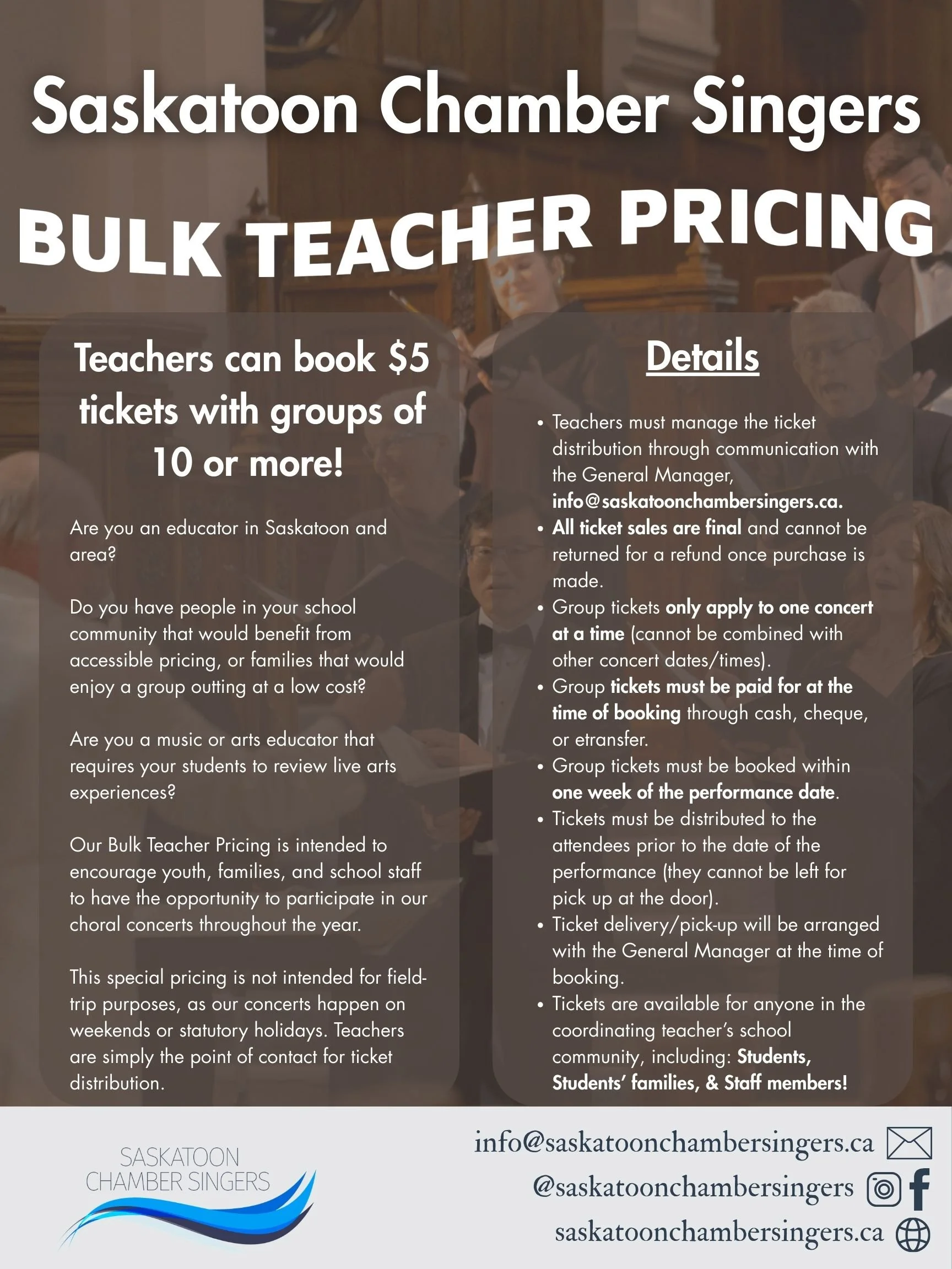 Saskatoon Chamber Singers were delighted to donate a concert to the children at the Jim Pattison Children's Hospital in October of this year. We had a wonderful time sharing our music with everyone and want to extend a thank you to the families and staff at JPCH for hosting us.